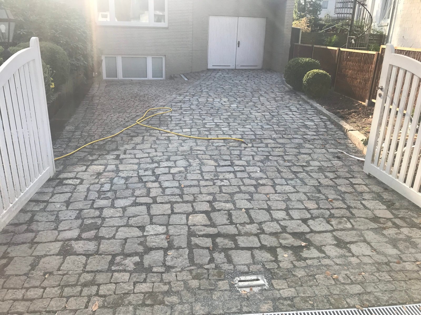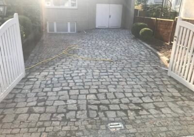 Wir arbeiten mit professionellem Equipment, bei dem der Druck exakt auf den Stein (Beton, Naturstein, Klinker) angepasst wird, um Schäden zu vermeiden. Es ist normal, dass dabei etwas Fugensand ausgespült wird. Das gehört zum Prozess: Wir füllen die Fugen anschließend mit frischem, unkrauthemmendem Material wieder auf, sodass die Fläche stabiler und sauberer ist als zuvor.